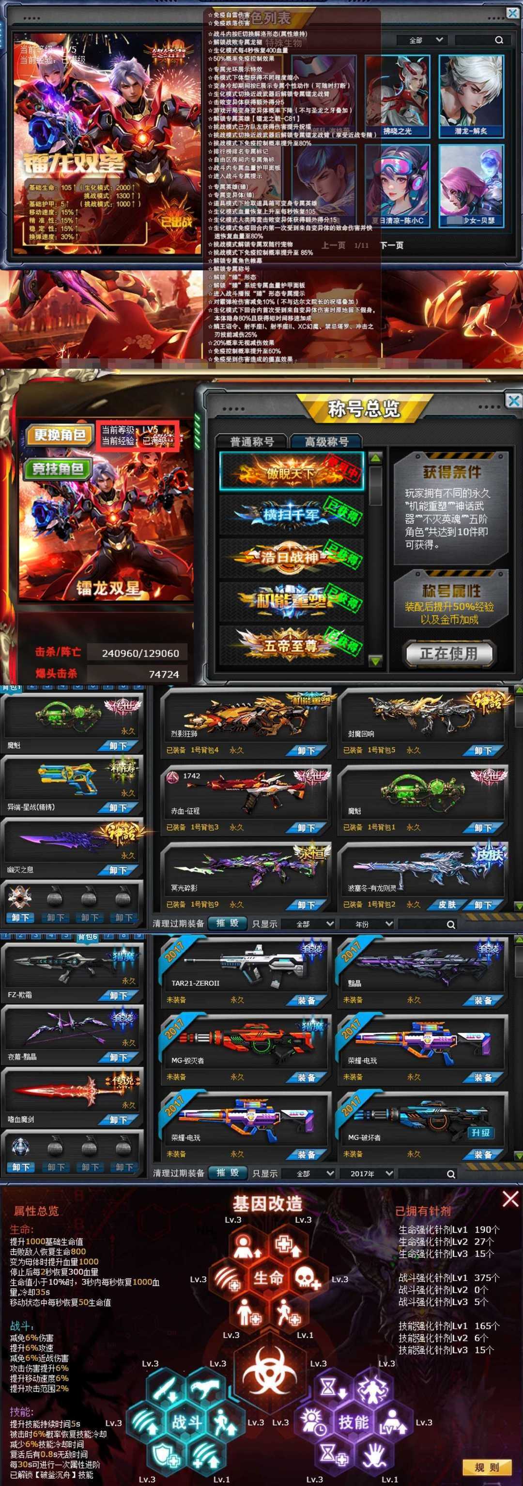 满级镭龙✨封魔回响✨满级夜莺✨无敌套✨双神话刀✨禁忌塔罗✨阿喀琉斯✨兔兔狱龙破✨恶灵骑士✨星蕴套