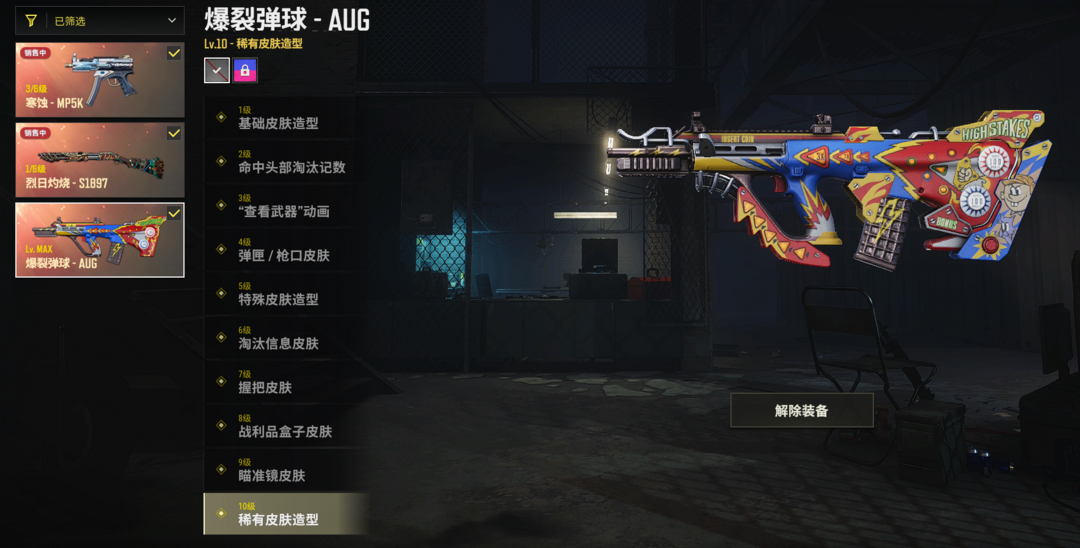 马丁跑车✅⑩级爆裂AUG✅③级寒蚀MP5K✅烈日喷子✅绷带AK✅斗鱼夹克✅白运动黑鬼