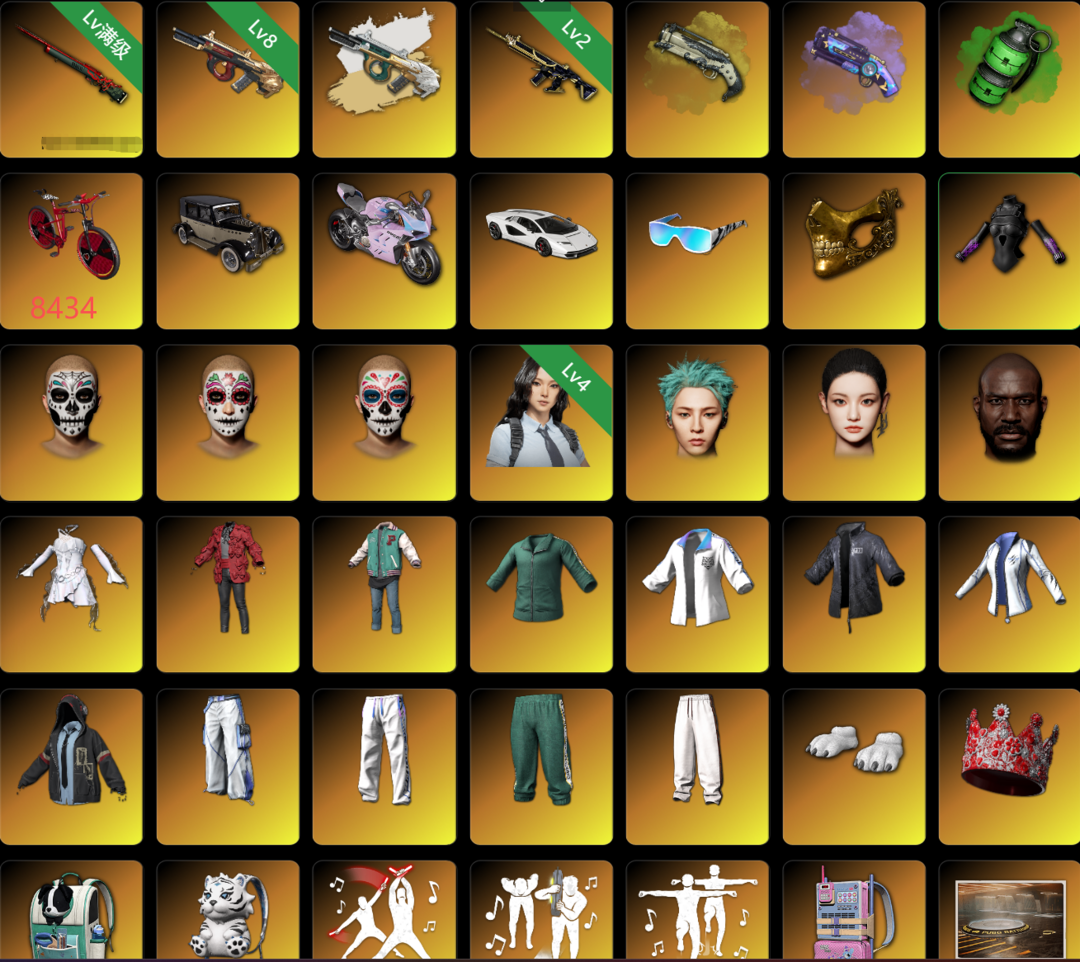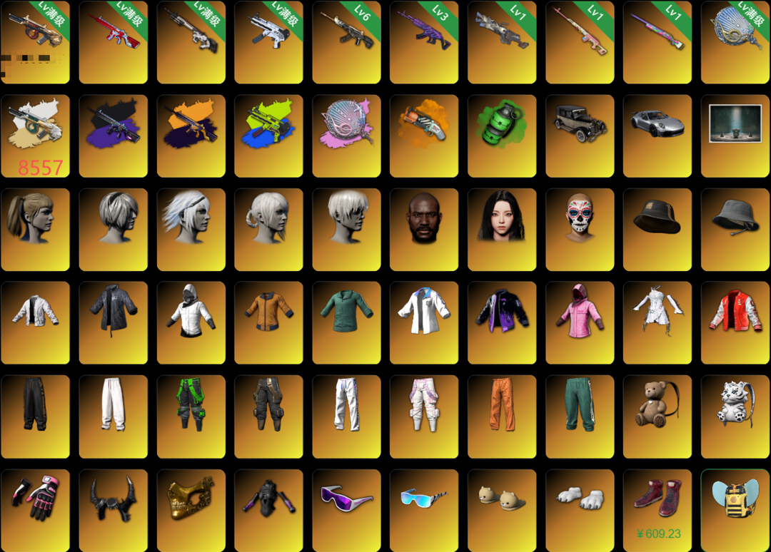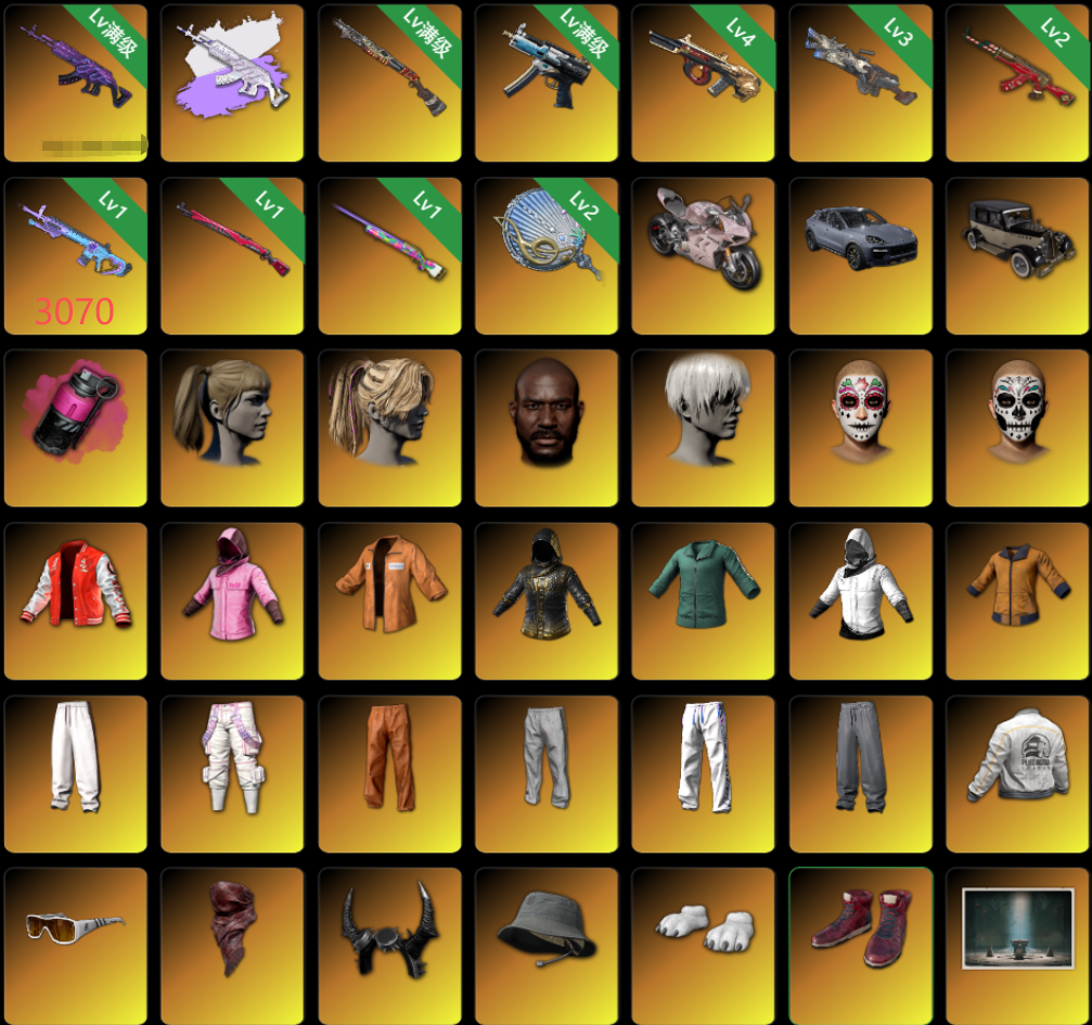 瀚娜4级权志龙杜卡迪兰博超跑✨满级悟空m24✨8级异色牛头AUD✨猪八戒m4烟枪烟雾弹✨黑鬼女团粉电
