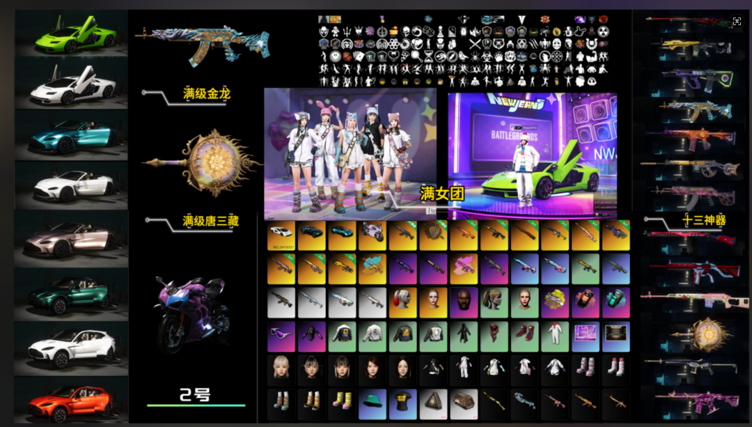 【2满级16神器】兰博跑车/粉杜卡迪/全马丁/满NewJeans女团/满级金龙/满级唐三藏/霓虹AU