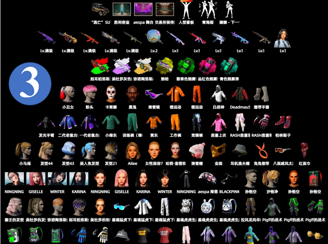 美杜莎M762三级√时空使者M416√孙悟空M24√悲喜套柏林鞋√猫咪挠摩托车√王者风衣√红面巾