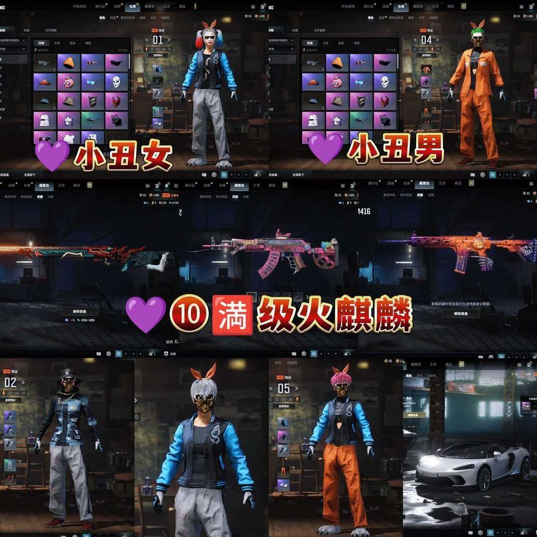 可排位❿级火麒麟大魔王手套~哈莉奎利小丑双头~尼尔白头~橙运动套装~大魔王夹克~迈凯伦跑车~粉头