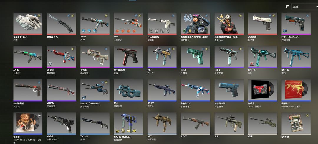 可完美/5e/羽袭白手套/爪子刀/m9刺刀/火神ak/二西ak/印花集m4usp/爵士蛙人/