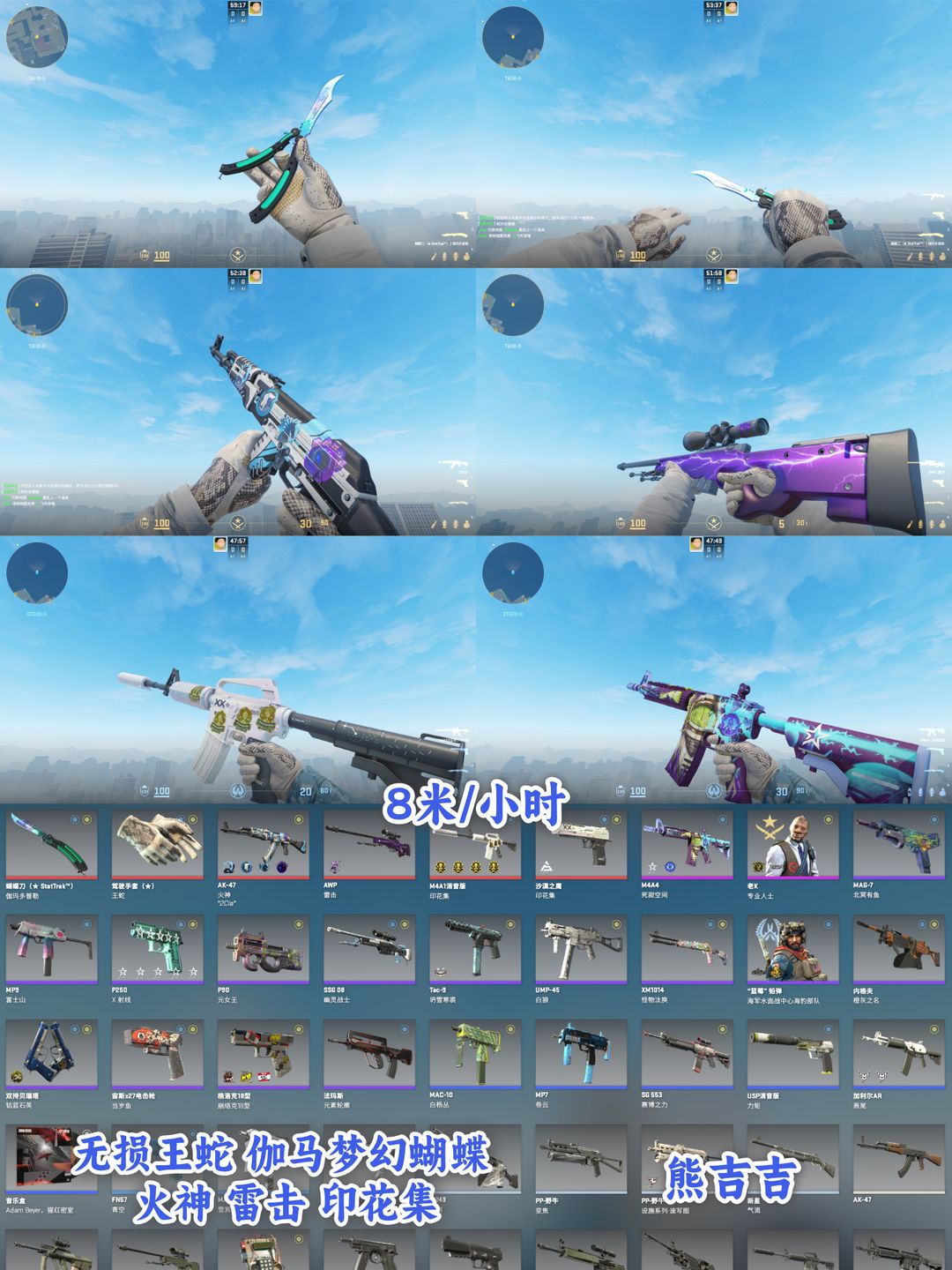 ✅完美绿色C+B 5E授信无损王蛇+伽马梦幻蝴蝶+火神AK+雷击+印花集+树篱迷宫潘多拉龙狙永恒M9