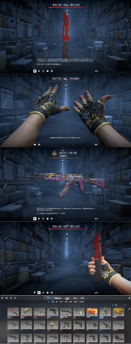 完美老兵丶蓝钢鲍伊猎刀丶awp印花集丶ak47深海复仇丶m4a1守护者丶主战皮肤号