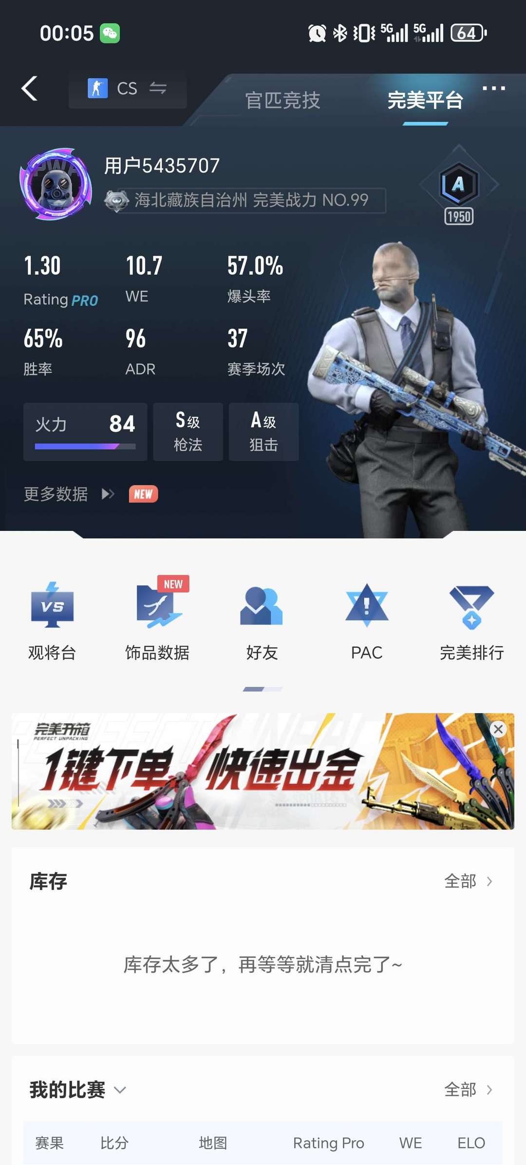 CS自动上,完美新人未定级,双刀两探员,可排位组排,主站齐全