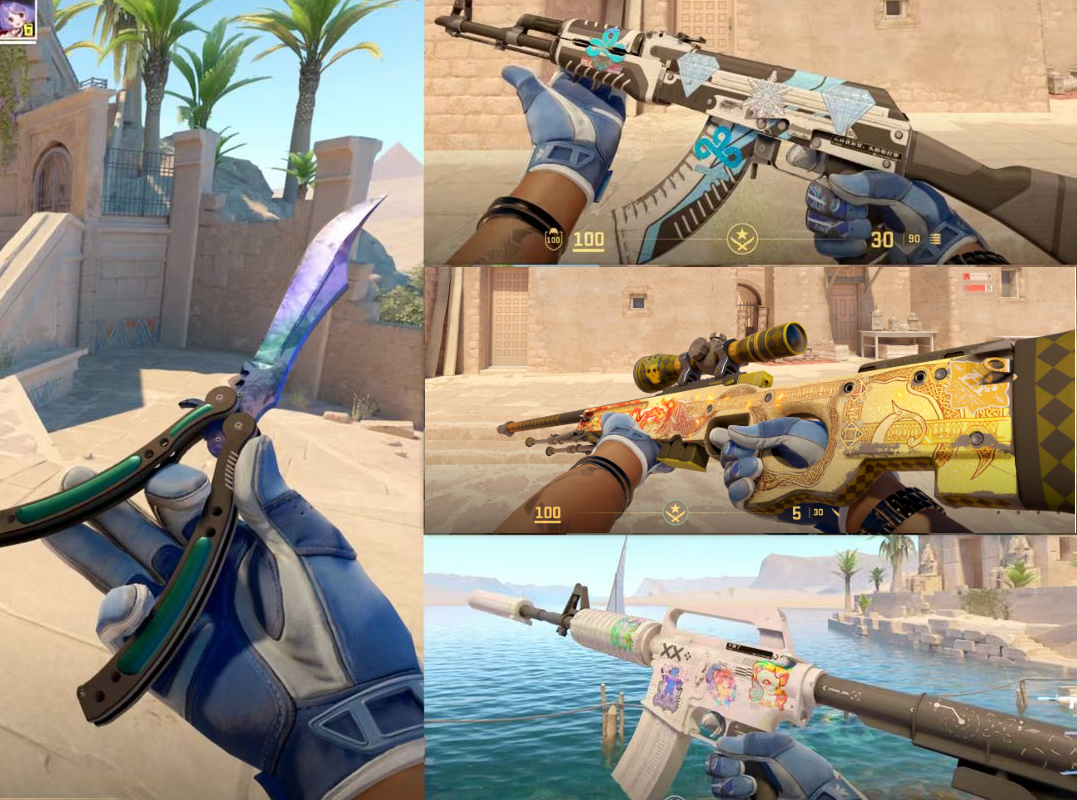 只可完美新手组排⚡蓝宝石多普勒爪子刀+M9刺刀 双栖手套⚡无损AK火神 冲出重围 awp印花集全套