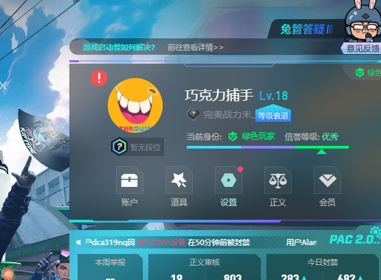 完美绿色认证账号-等级18-赛季未定级-低分带妹