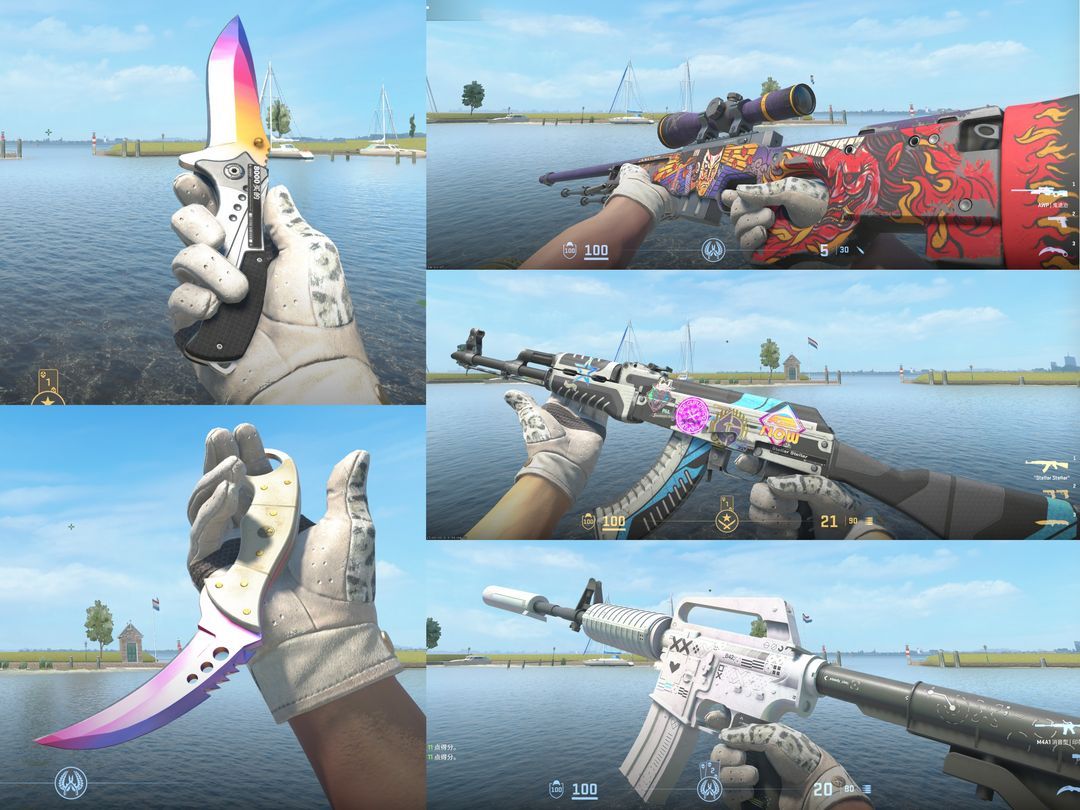 可完美❤迈阿密手套❤蝴蝶刀❤awp镀铬大炮❤AK青花瓷 ❤印花集