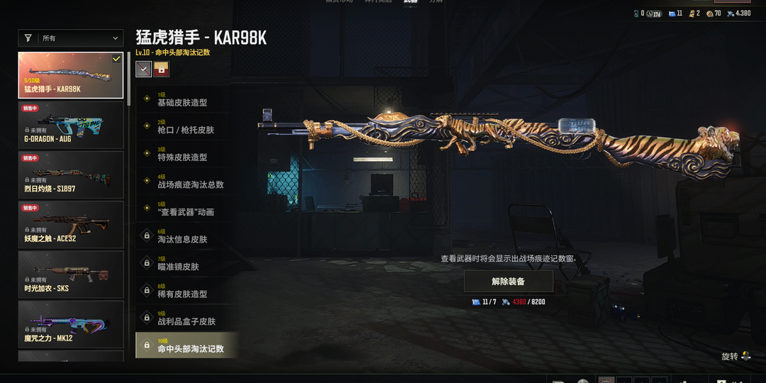 二级密码123456✅⑤级猛虎猎手98K✅破碎元素AKM✅金色落叶M4✅黄金齿轮M762✅猛虎猎手S