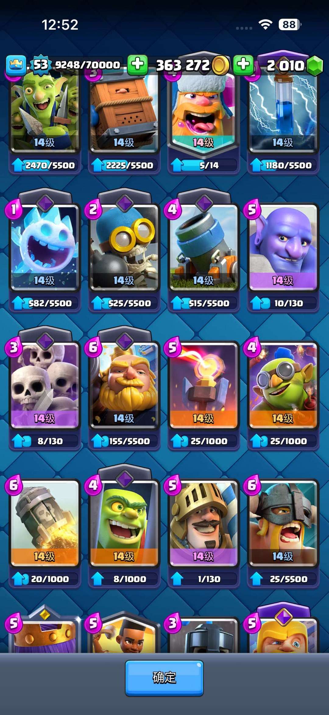 皇室战争擦奖杯表情账号出租有很多十四级卡牌极少15级卡牌有擦奖杯表情和很多其它表情 我登录