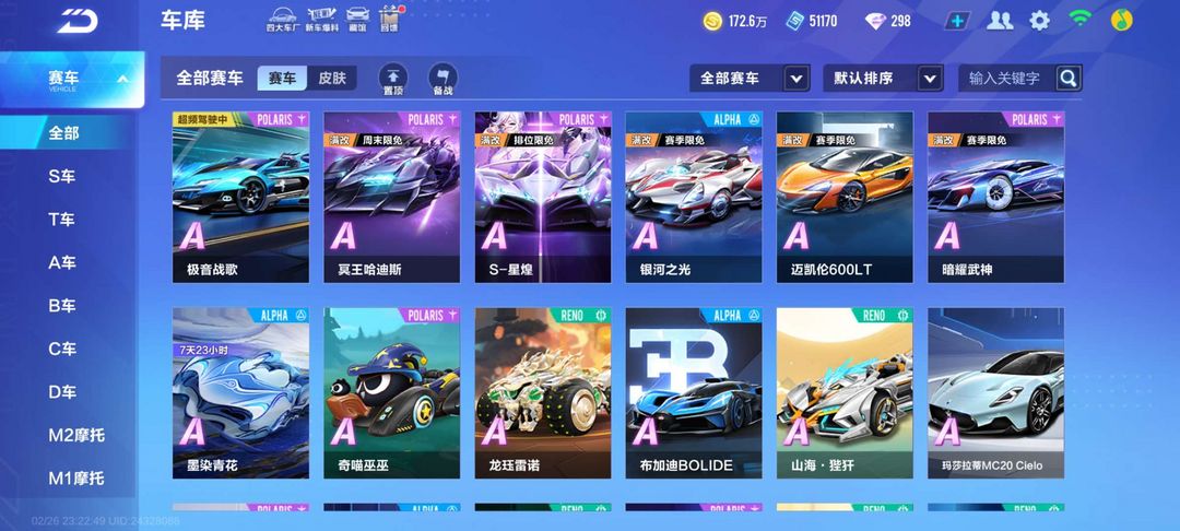 最新联赛车S溯光满改♥S幻星♥S星煌♥T车鸭宝超人♥天蜀仙剑♥宠物雀焰女王贪狼♥113A