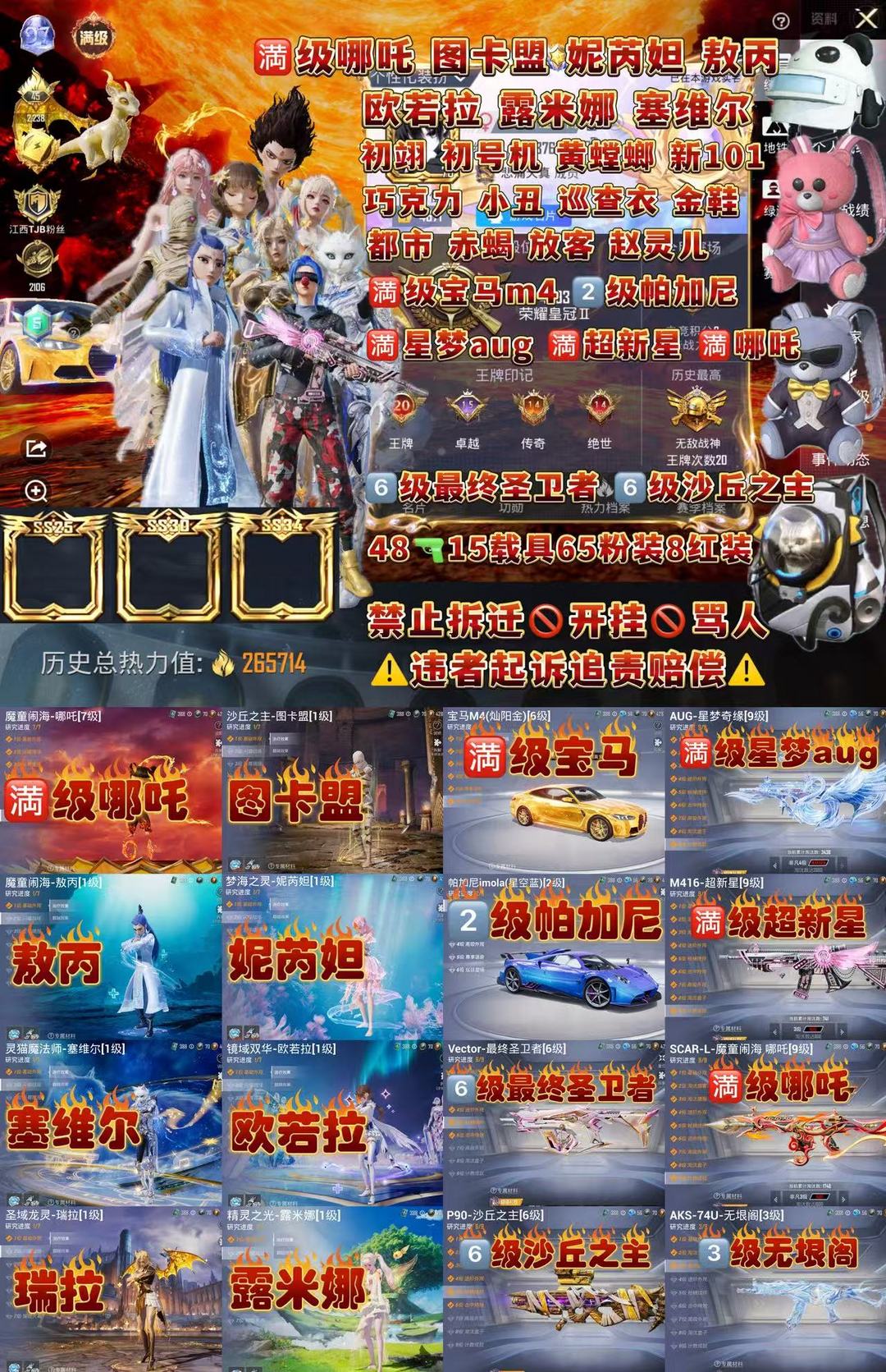ID【秘】✨老框5红6级图卡盟哪吒龙师父星星裤✨8级星梦满级魔童至情✨满级迈凯伦✨70粉50枪17车
