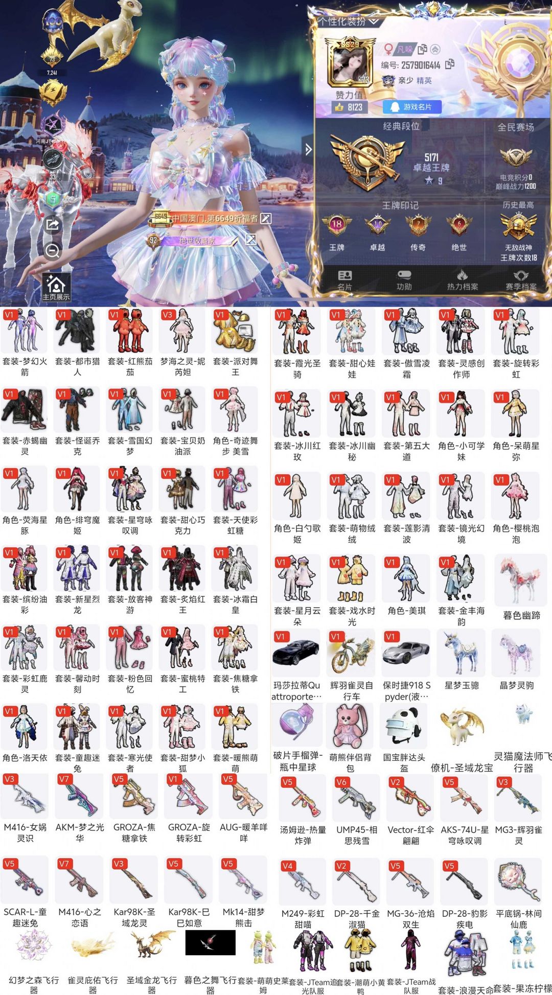 初号机螳螂✨满级m416风花雪月✨木乃伊✨洛天依✨梦幻火箭✨✨3载具(路特斯+兰博基尼+玛莎)