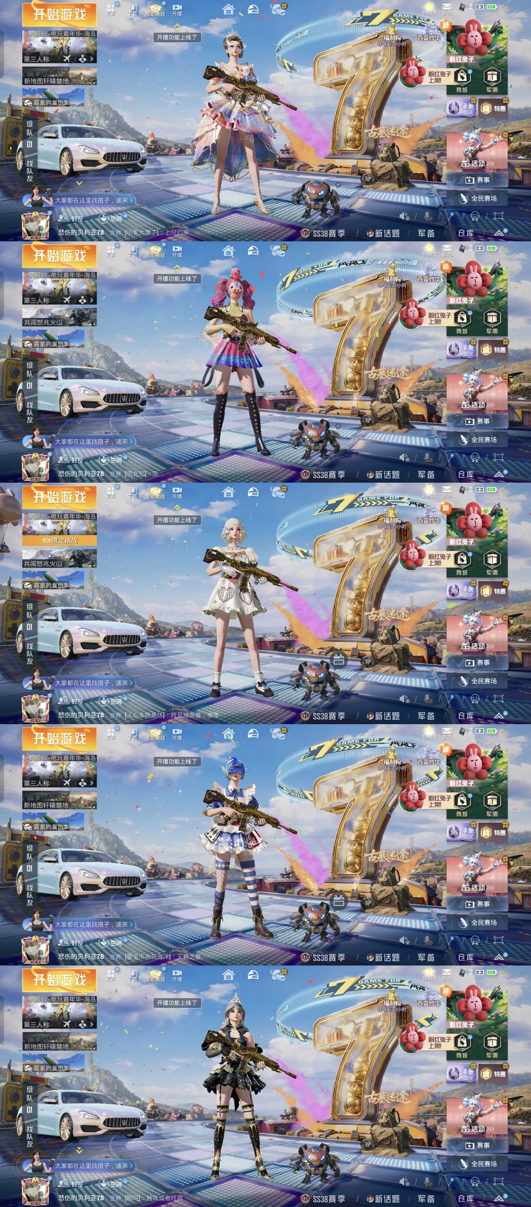 【12粉枪 21粉装 4载具】4级图卡盟#3级宾利飞驰#粉蓝螳螂#梦幻火箭#露米娜#猎人#哥特#
