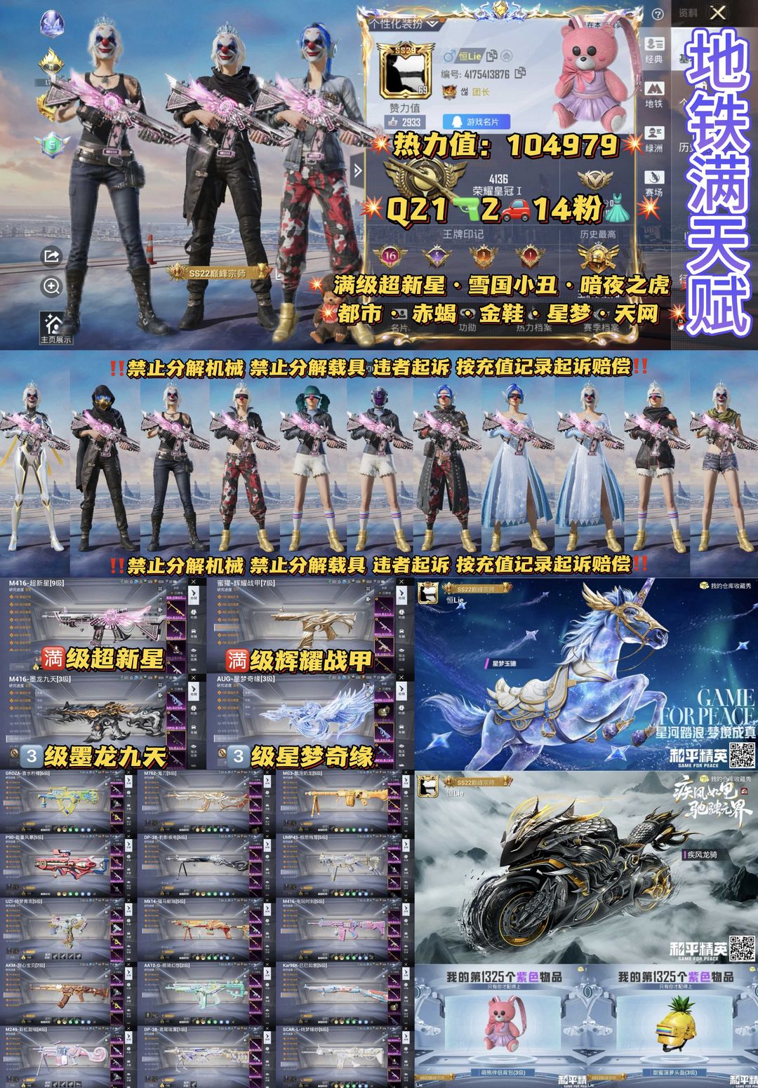 包天便宜✨满级M4超新星星梦绝世印战神框天网暗夜之虎雪国小丑极限赤蝎都市金鞋水晶马粉熊包