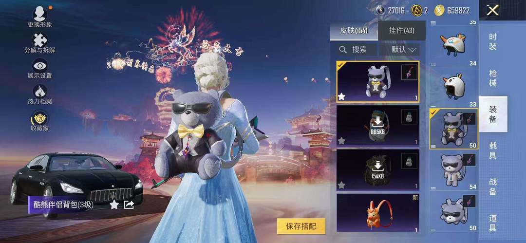 不卡顿10粉装梦幻火箭❤️4特效枪五爪金龙心之恋❤️绿马丁僚机❤️酷熊背包