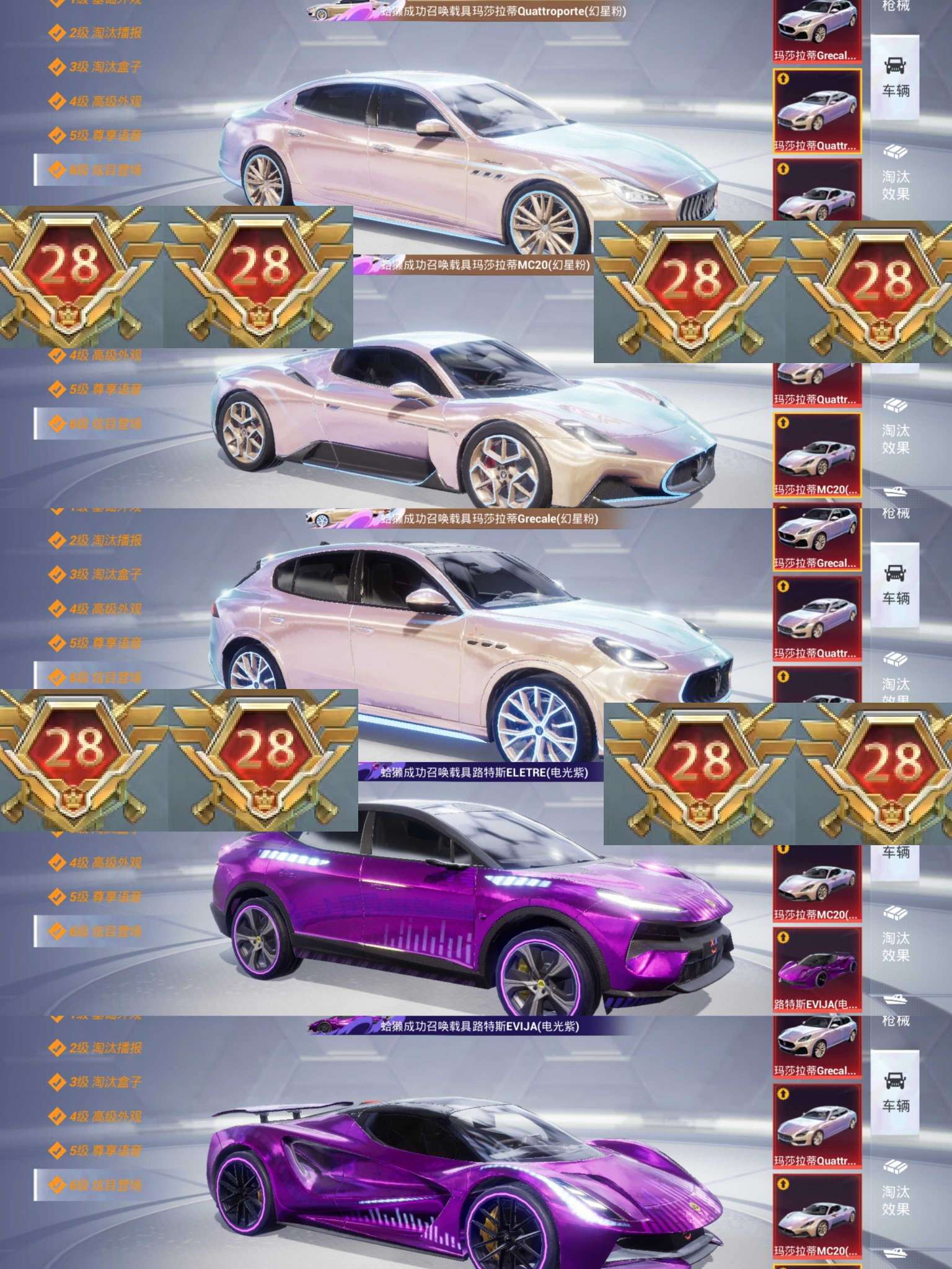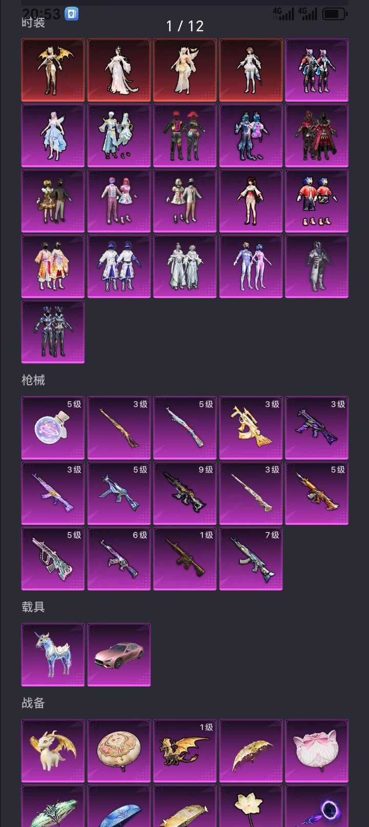 15粉装-8粉枪-4载具-7级m4风花雪月-7级m762激战未来-7级vk-5级狗砸镜光