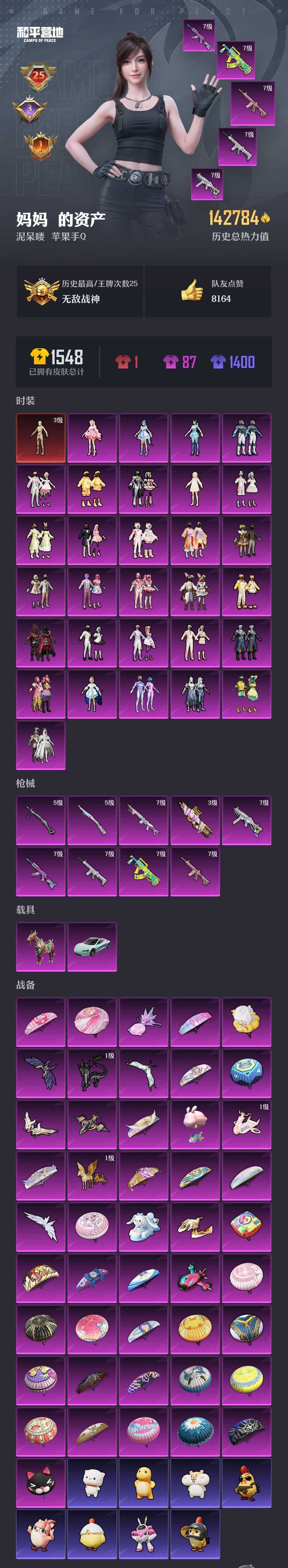 满级欧若拉★6红装★1满级车★20车皮★104粉装★61特效枪★很多热门紫装★撤单小黑屋