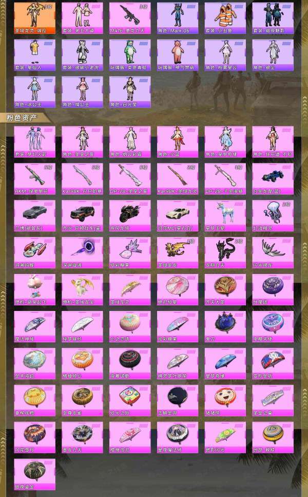 火箭少女,玛莎拉蒂,AK梦之光华,M4风花雪月,全套环太平洋,大量紫皮,白银极品炸鱼号