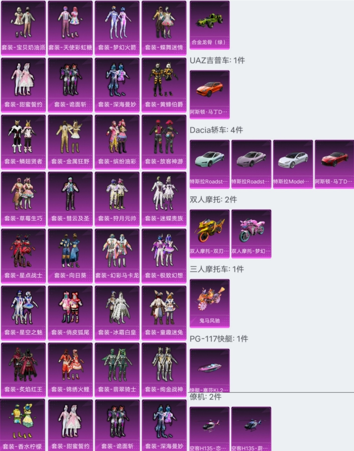 包天便宜 2级红装木乃伊 绝世印记 3级幻星粉玛莎11载具 64套粉装 22把升级枪 螳螂 雪国