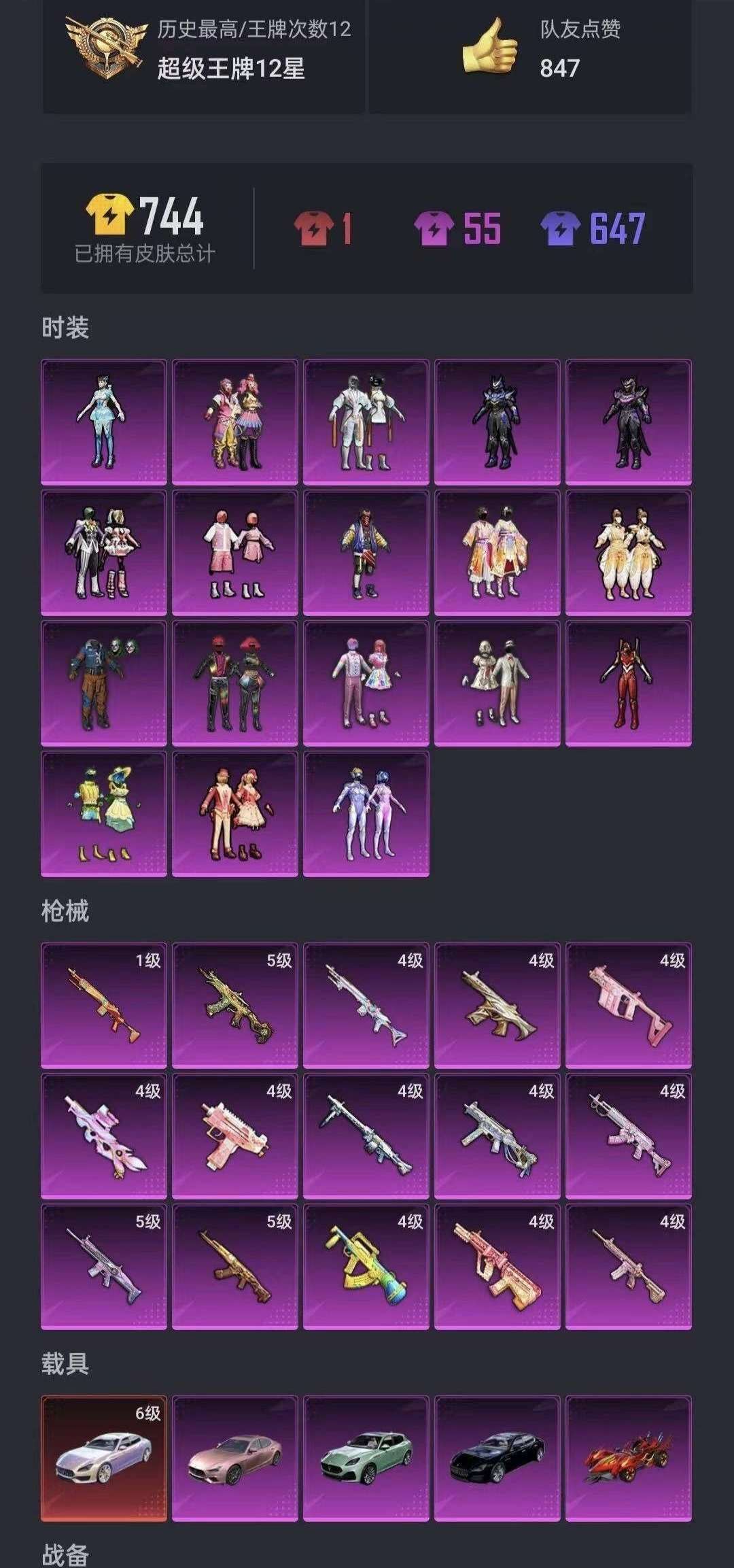 6级图卡盟 满级女娲m4 高级AUG星梦奇缘 高级74u无垠阁 6级金蛇死噶 素材号
