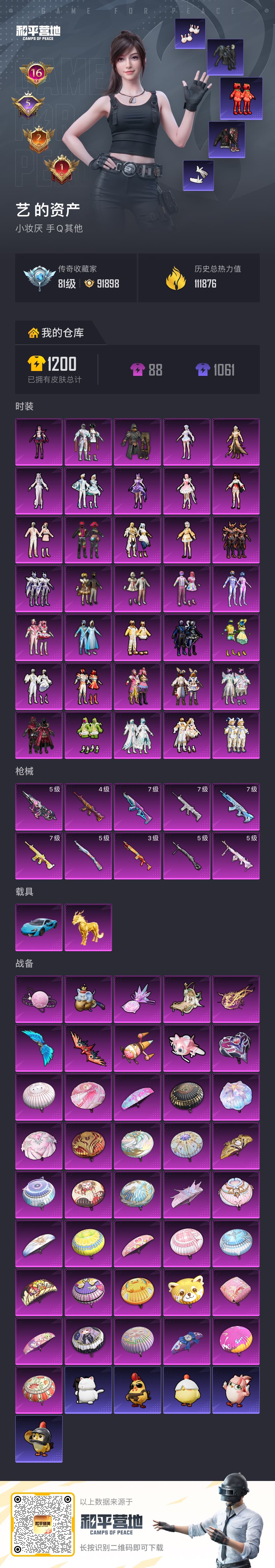 2神装-21粉装18粉枪-5载具✨3️⃣级图卡盟✨欧若拉✨雪国✨金鞋✨都市猎人✨梦幻火箭✨时空跃影