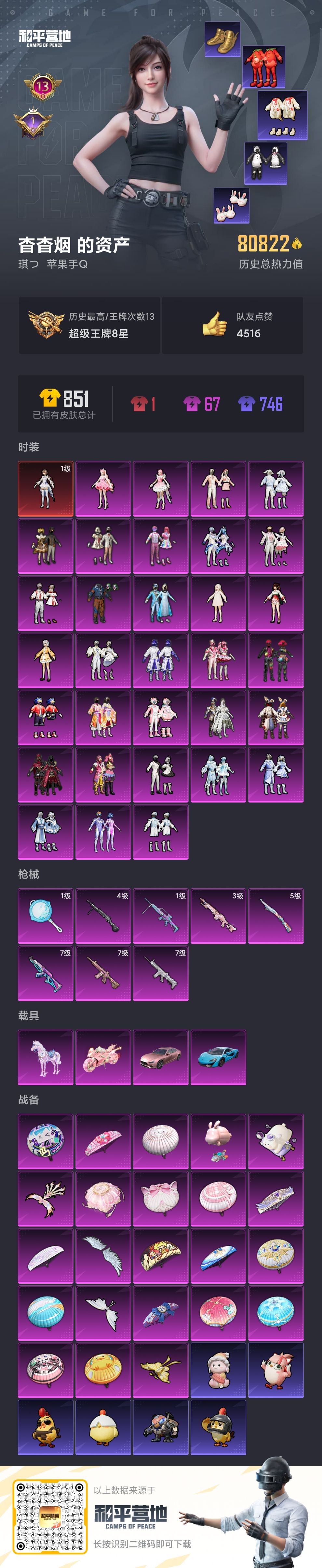 4升级枪 4粉装 1尾迹 141枪皮 114套装 41947热力 11印记 星钻JYM3GT477