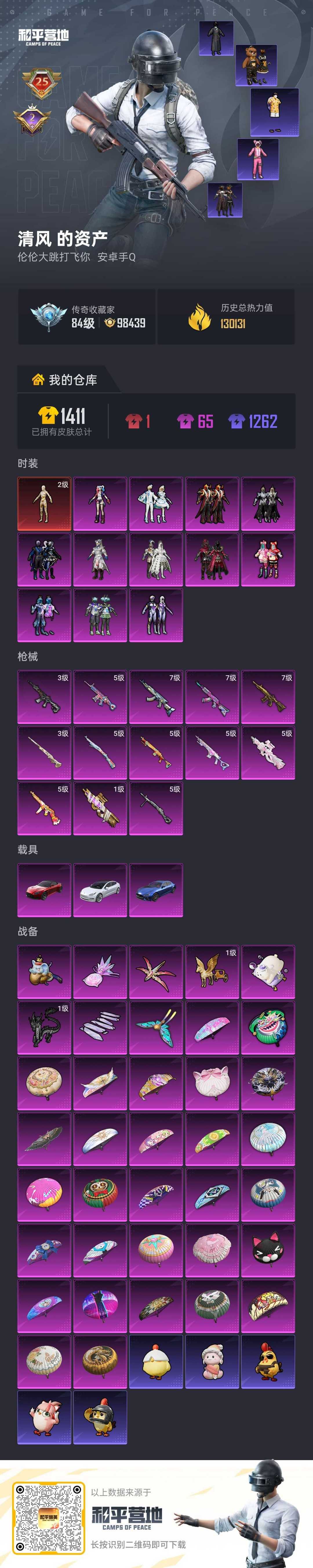 【291时装44装备58战备42枪械3紫色降落伞】千禧之恋❤️暗夜契约❤️丛林猎人❤️Kar98K