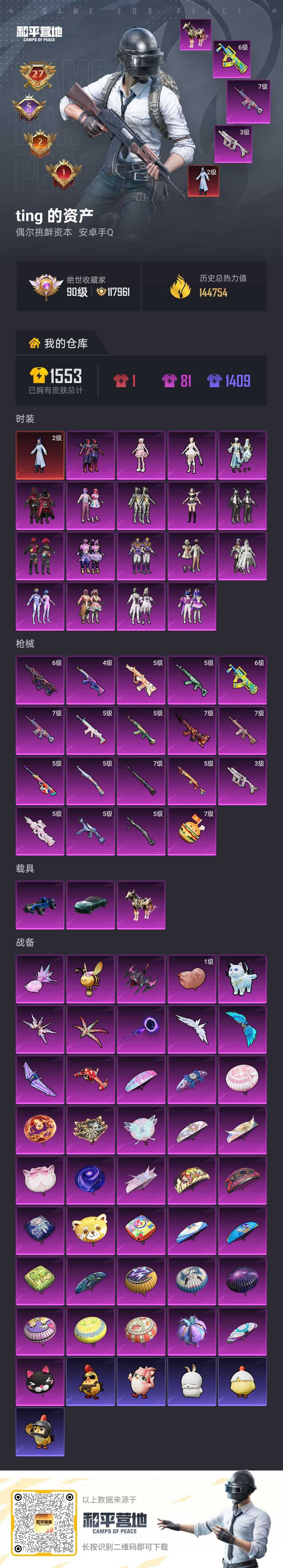【291时装44装备58战备42枪械3紫色降落伞】千禧之恋❤️暗夜契约❤️丛林猎人❤️Kar98K