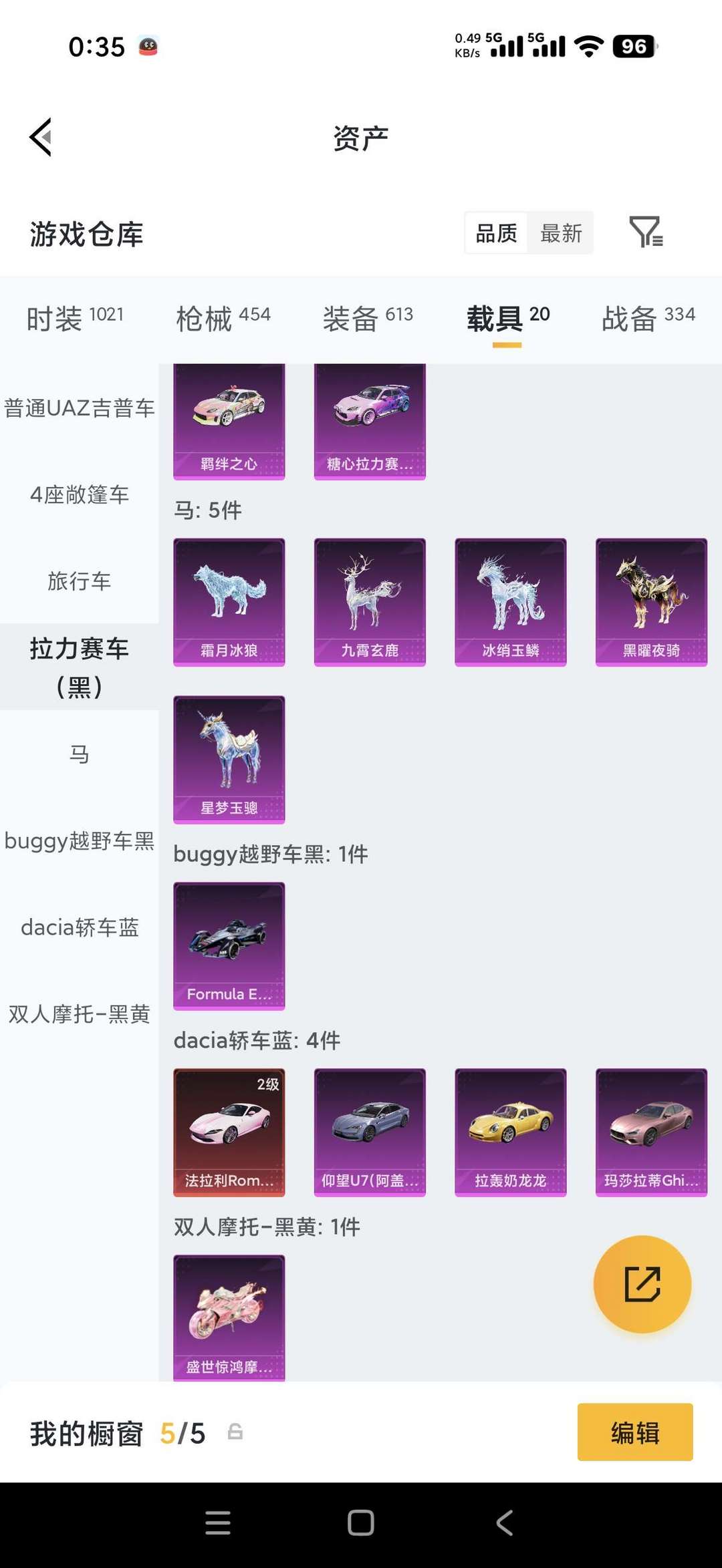 满级路特斯☞7车玛莎拉蒂☞18套粉☞浪漫波比☞五爪金龙