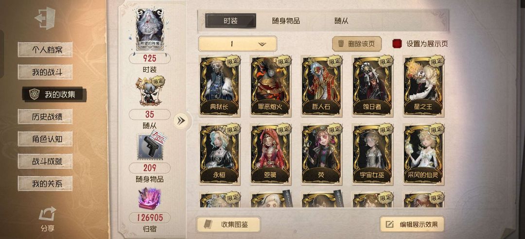 氪条奖励全拿,3虚妄。P5全齐,深渊全齐,福尔摩斯全齐,电竞求生全齐,梦幻岛球1全齐。麒麟商人和黯。