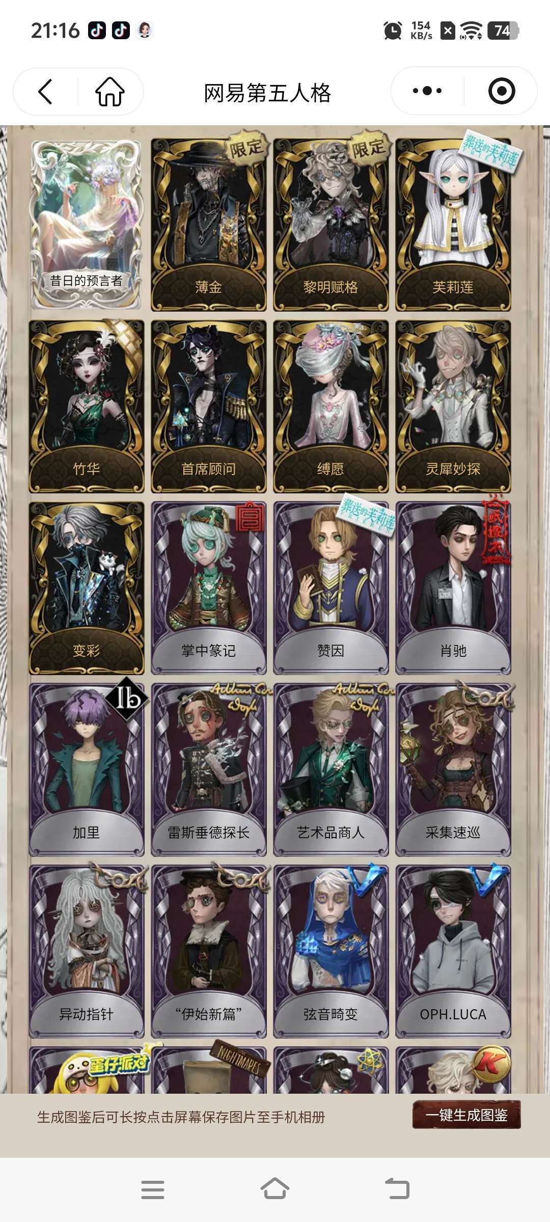 (禁打字)有勘探的孤狼,oph除小丑都有包括挂件,有囚徒二限,跛脚羊一限