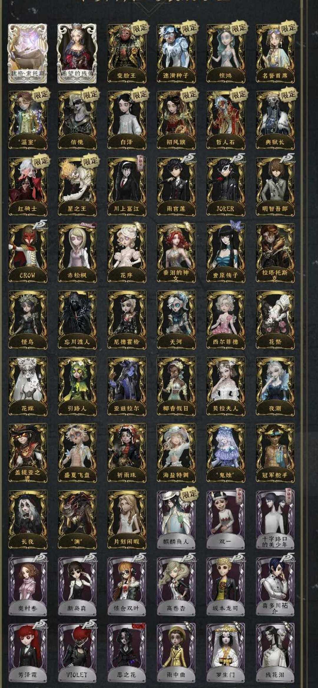 35金JOKER东风遥套富江长夜星辰驯兽黑鼻子斜眼寒香舞国王裁缝版本精致笑容流萤套柴郡猫盛宴伯爵海盗