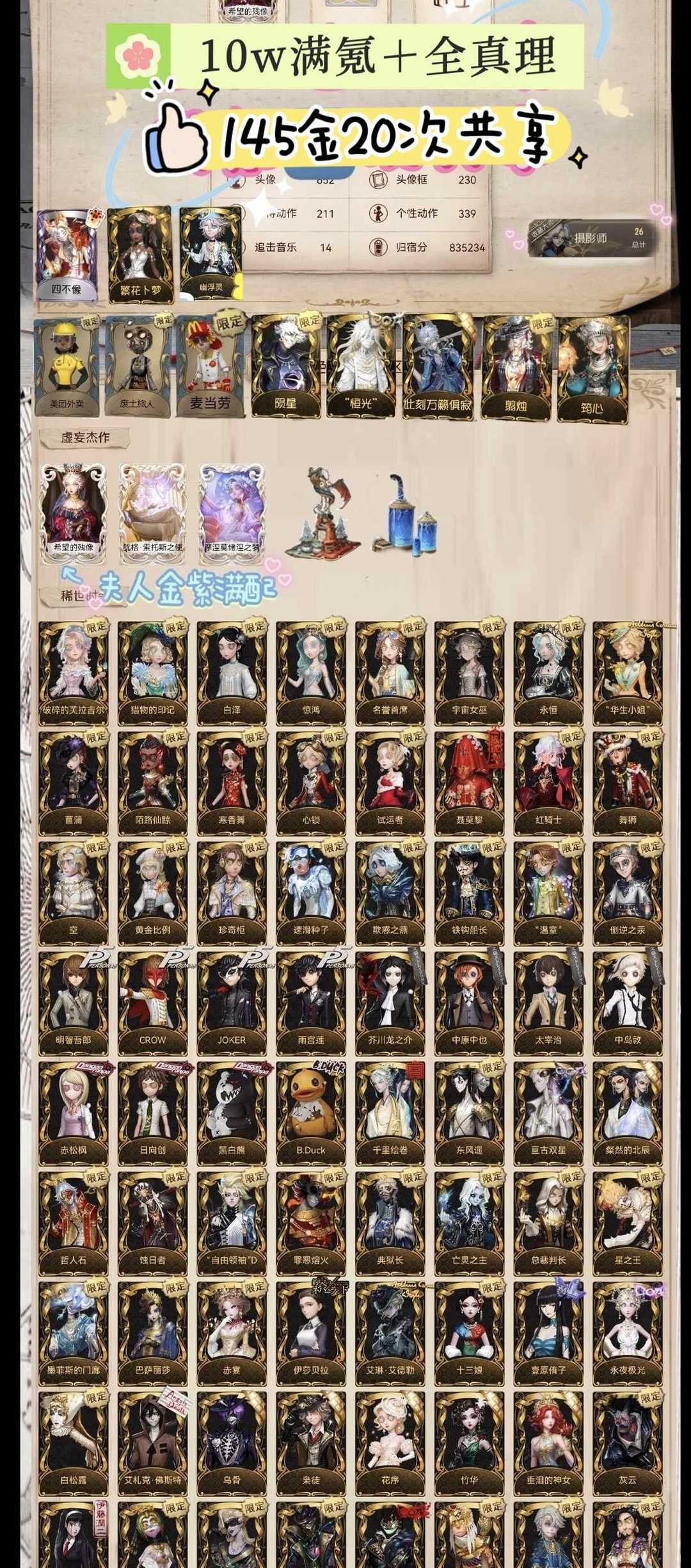 10w氪全真理❤194金⭐赤宴 妈沐 虚妄❤亡灵总裁 约约满配❤蚀日 典狱长 罪火⭐十三娘