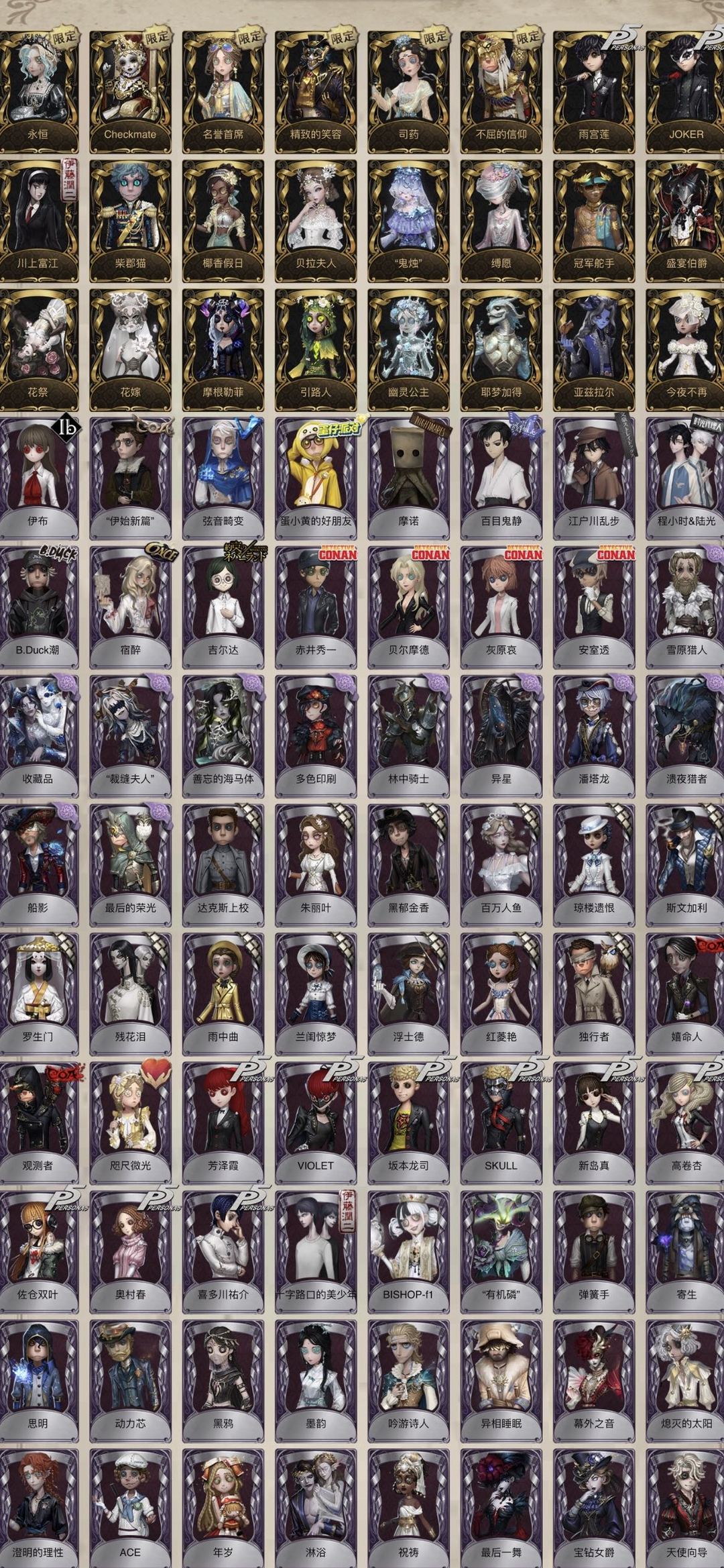 55金♦服部平次金靴套skull赤宴joker墨菲斯伊莎贝拉岩鸽引魂人忘川招风旗套龙司觉醒鬼烛套禁言