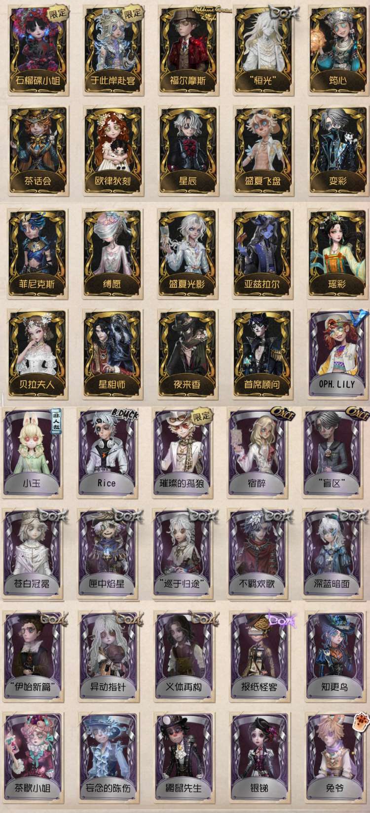第五人格4399渠道服 拉拉队限定 伊藤润二全套中岛敦太宰中原中也 有全服都很少见的限定皮 详情看图