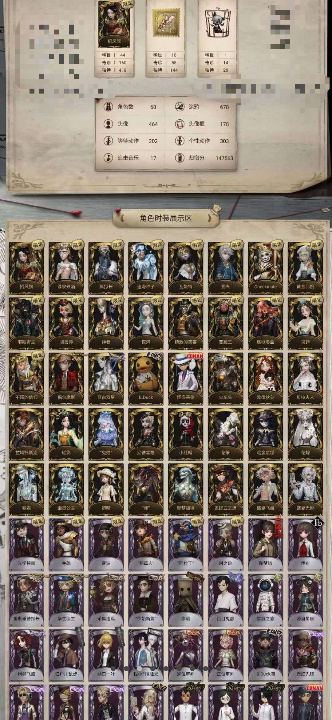 共享70金-S典狱长503+黄金比例+速滑种子+神眷+驯兽师+惊鸿+基德+金靴(禁打字语音)