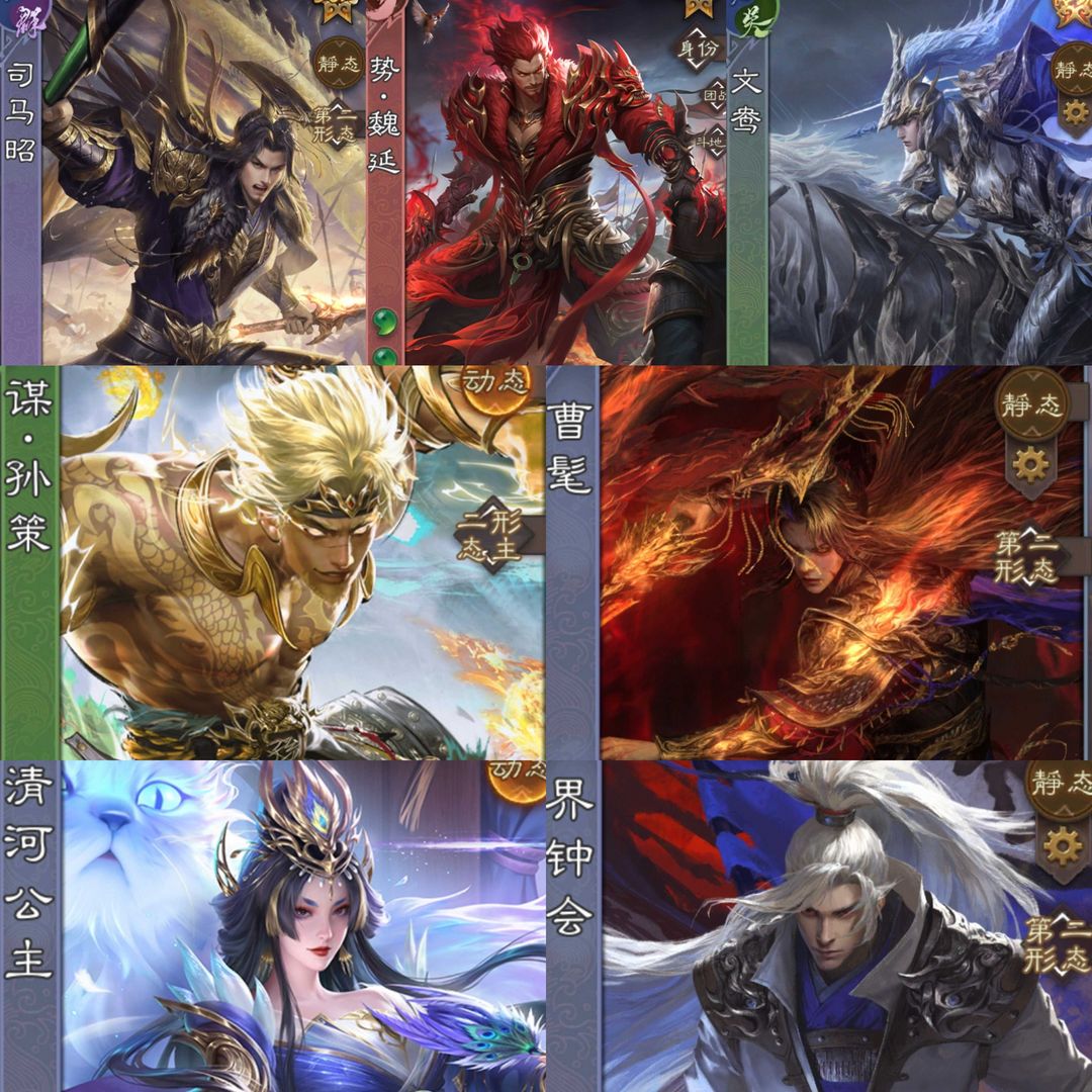 有卡三卡⭐势国渊⭐至臻皮十常待⭐曹髦⭐动神孙策⭐动大宝⭐动郑玄⭐动界钟会⭐天宫极多⭐