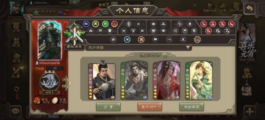 有卡+谋关羽神刘备神吕布界朱然嵇康+想玩谋关的快来租号吧!玩腻了可以试试号里的其他武将,性价比绝对高