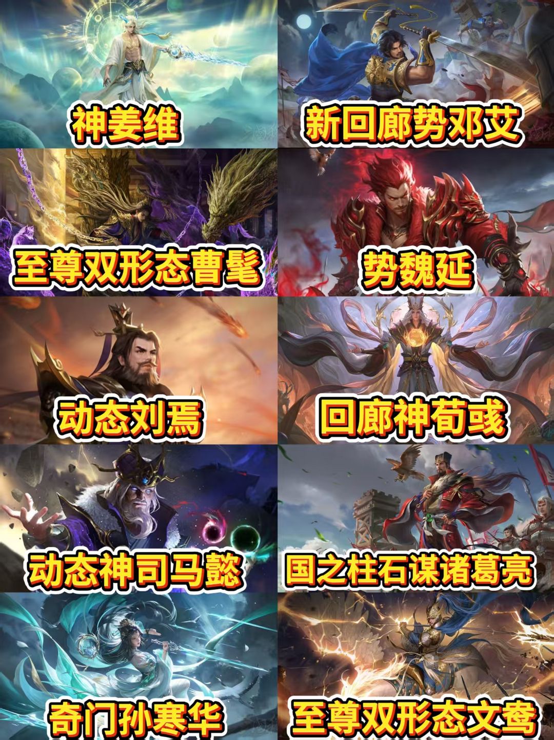 ⭕新双形态曹髦⭕势魏延谋吕布♈全巨头妹号108史诗♏回廊文鸯双形态神郭嘉♐十常侍神华佗友诸葛