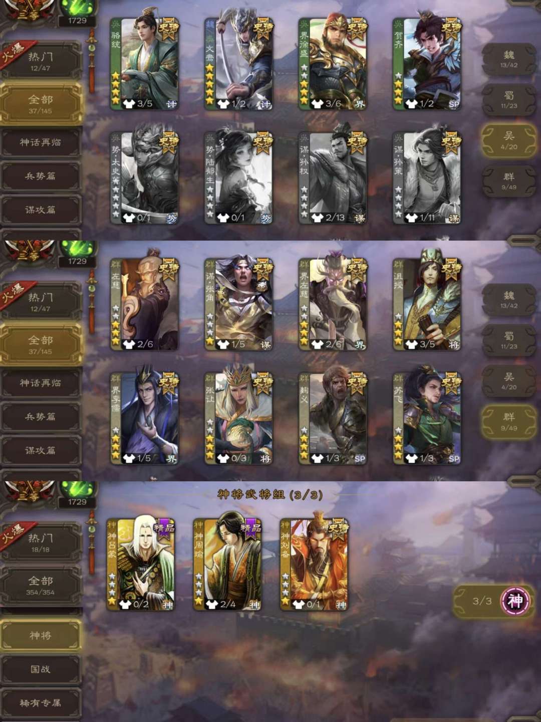【幂幂】大将军31史诗378武24动态415皮★友诸葛★动神曹★动吕神★赵神★周处★攸★弥★留