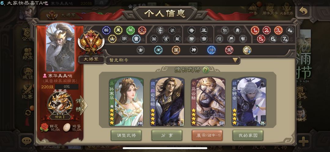 官阶: 校尉 神将: 神赵云,神吕蒙,神周瑜 亮点: 神赵云,改日哥,花花