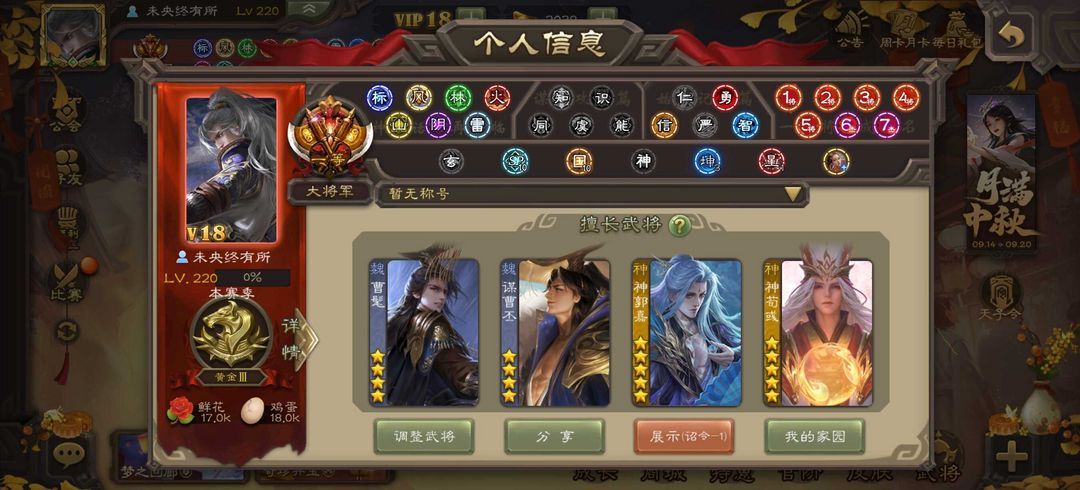 (有卡)一等排行榜1大元帅❤️全灯全扩全武将全满星❤️星周不疑神荀貂蝉新动皮全动皮全回廊39万