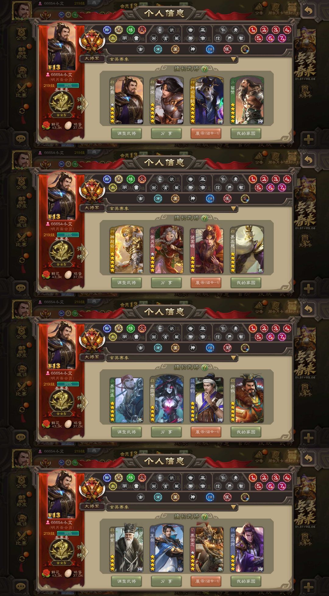 有卡【35史诗大将军】动神甘宁动神赵云动王元姬动谋马超+界徐盛界钟会界李儒戏志才