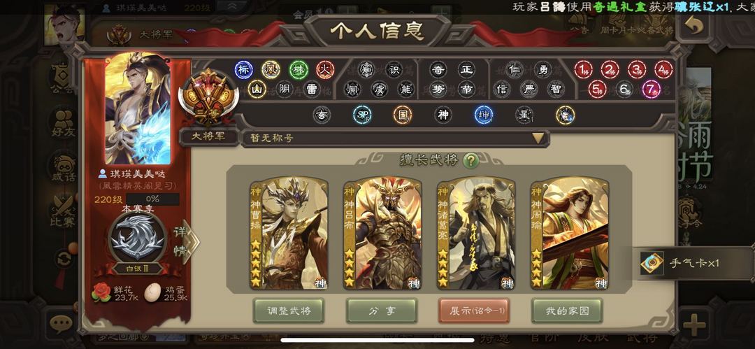 三国杀官服移动版120武将,各种神武将体验卡,140多级校尉