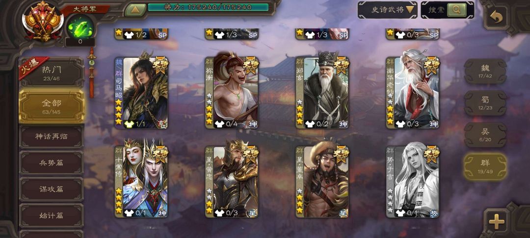 【有卡】五至尊皮♥势国渊∨29♥136SS-全武将满灯全扩大将军,战力45w排名45
