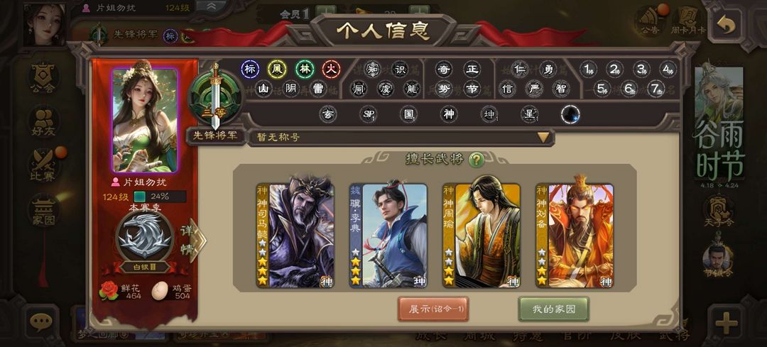 官阶: 校尉 神将: 神赵云,神吕蒙,神周瑜 亮点: 神赵云,改日哥,花花