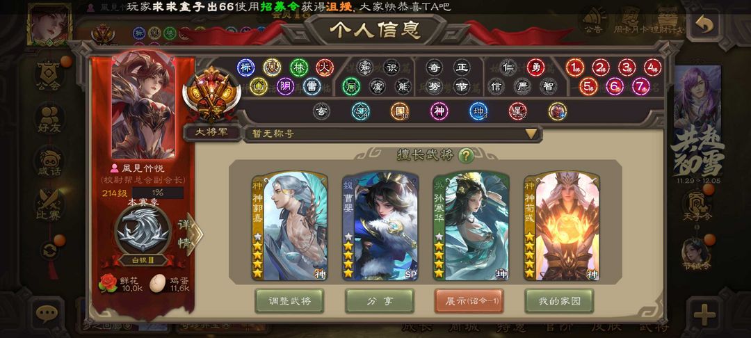 有卡一等大将军♥超标谋吕布♥三至臻双形态❤动老刘❤对徐荣sp甄姬❤谋陆逊回廊神曹动司马准全神