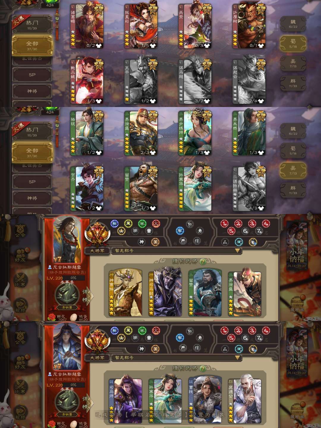 【有卡】动神甘宁◆动神孙策◆神鲁肃神赵云◆双形态钟会◆谋孙策谋黄盖◆杜预白马大宝